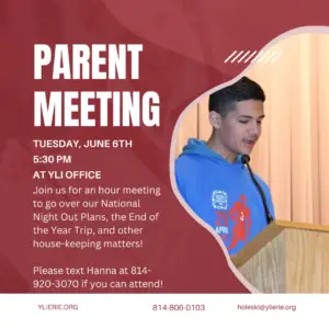 Please join our June Parent Meeting to discuss our plans for National Night Out, our End of the Year trip, and other house-keeping matters.